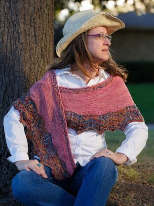 This crescent shaped shawl is knit from the bottom up with short row shaping in the body. The lace edging is both charted and written out.