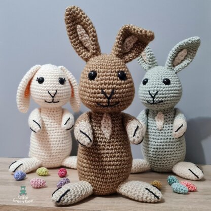 Rodney spends his days searching the fields for tasty crops and patches of lush grass - he gets very excited if he finds a dandelion! Rainy days he spends indoors, exploring the warren underneath, visiting his 8004 brothers and sisters in their burrows along the way. He sits 11.5 inches tall (when made with recommended materials).