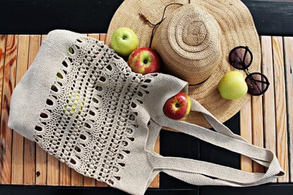 Crochet tote bag pattern for “Romanesque” bag. This crochet bag is great as grosery or beach bag. Pattern is easy to change handles length.