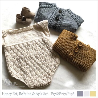 - Larger sizes available in this pattern for: Beltaine Cardigan – P176: Sizes 3 months to 2 years Honey Pot Cardigan - P177: Sizes 0 months to 7 years