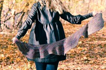 Rondelay is a one-skein, reversible garter shawl constructed from three sequential half rounds or rondels, which grow from cast on stitches using short rows and strategically placed radial YO increases. Each rondel builds upon the previous one, creating a finished semi-circular shape that drapes beautifully as it wraps around the shoulders. Designed to show off the colors of a variegated or hand dyed skein, Rondelay looks equally fantastic in a solid color.