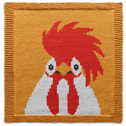 Rooster Square Knitting Pattern, Farm animal bird Intarsia