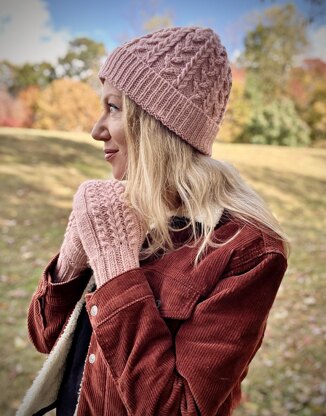 This coordinating hat-and-mittens set features fun-to-work dip stitches and sculptural cables, creating cozy accessories with captivating texture and lots of SQUISH.