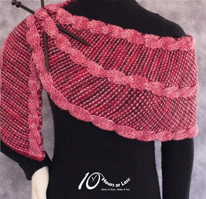 Pair your favorite hand-painteds for a rich and reversible knitted shawl! Worked with just one color per row, the completely reversible fabric sports a trio of double-knit cables floating on a contrasting bias-knit garter background. Prefer a petite version in summer silk? Or a worsted weight wrap for everyday wear? You can do it all with our step-by-step instructions for making ANY size in ANY weight of yarn.