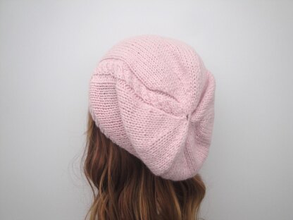 Rosalind is a slouch hat with a little cable detailing, made extra special in cashmere! (or any other worsted weight yarn...)