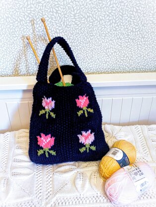 A very quick to knit gift as the bag is worked in chunky yarn. Great for using small amounts of left-over yarn and for those wishing to try picture knitting.