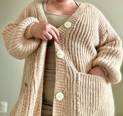 The Rose Cloud Cardigan is a fluffy, oversized cardigan that you can wrap yourself up in on a cold day at home. It was designed with a puffy balloon sleeve to add to the whimsy of the garment, but a tight cuff is included to keep those big sleeves out of your way in case you need to grab a snack or turn a page in your book. Snuggle up in this soft, alpaca sweater!