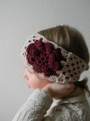 Here is a beautiful rose headband design that is very easy to make. It's based on granny square pattern, which most crocheters have mastered even as beginners. The headband tapers off in the back, and you can easily adjust the placement of the button for a perfect fit. As far as the length goes, you can always add or subtract a couple rows to make a desired size change. I give my suggested sizes for a toddler, a child and an adult.