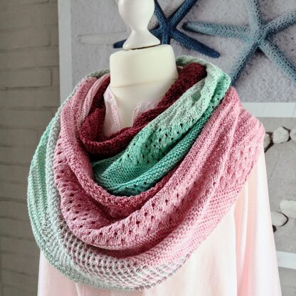 Selbstverständlich ist es auch möglich dieses Tuch ohne Farbverlaufswolle zu stricken. Dann einfach ca. alle 8 bis 10 cm die Farbe wechseln und somit auch das Muster. Besonders schön wird das Tuch, wenn die einzelnen Farben Ton-in-Ton gewählt werden.