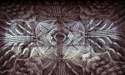 From the pattern description: "This circular shawl design was inspired by a rose window at Church of the Ascension in Pittsburgh, PA. The center is based on a pi shawl framework, but the outer section grows through integrated increases. For more reflection on the floral symbolism in this design and a complete gallery of photos, click here." This is the fourth pattern in the Liturgical Year Series.