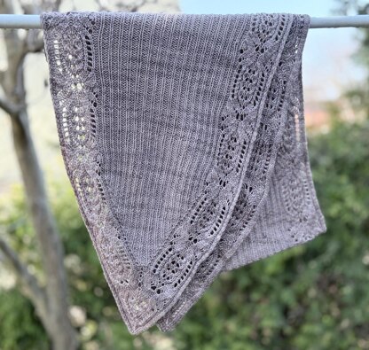 The Roselight Lace Shawl is a graceful and elegant accessory that combines gentle texture with beautifully intricate lace. The body of the shawl features a subtle textured pattern, allowing the delicate lace edging to truly shine and create a refined, romantic finish. A built-in i-cord edge runs around the entire shawl, giving it a clean, polished look and helping it keep its shape. Long and versatile, it can be worn draped over the shoulders as a shawl or wrapped around the neck as an oversized scarf. The finished shawl measures approximately 40 x 220 cm, making it the perfect lightweight layer for everyday wear or special occasions. The sample was knitted using 100% merino wool in sport weight yarn, creating a soft, airy fabric with beautiful stitch definition.