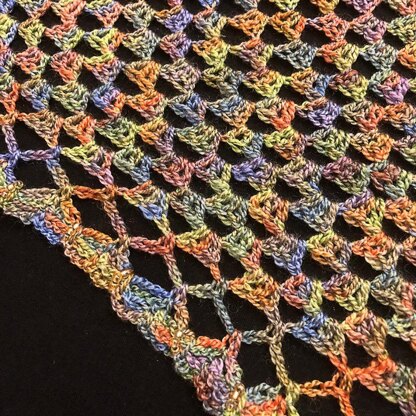 A lightweight, silky delight. This season-spanning shawl starts at one tip and grows in ever-increasing rows, creating a boomerang-shaped fabric that drapes beautifully. The granny-style stitch pattern is easy to memorize and even easier to stitch.