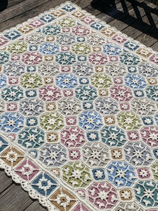 This warm and solid afghan will provide you with hours of enjoyable crochet as you combine several sizes of octagons and squares with basic crochet stitches, clusters, and front-post stitches.