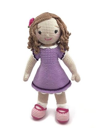 Say hello to Rosie, your new best friend who loves to cuddle. Rosie loves spending time with friends and dancing. She is an amigurumi doll wearing a removable dress and shoes, and has a rose in her hair.