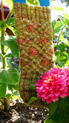 Skill Level Intermediate: This sock requires some major cabling, although there are rest rows. It also involves some afterthought embroidery (explained with a video link in the pattern). You'll need approximately 10yds of a contrasting yarn.