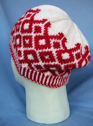 This pattern requires the knitter to work knit, purl, and decrease stitches in the round for the basic hat shape. The hat begins with corrugated ribbing, which combines stranded work and 1x1 ribbing. Stranded knitting is represented in charts only.