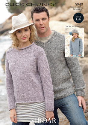 Round Neck and V Neck Sweaters in Sirdar Click Chunky - 8940 - Downloadable PDF is a Knitting pattern by Sirdar, available as a Downloadable PDF and includes instructions in English. Super fun to make, this pattern could be your next masterpiece!
