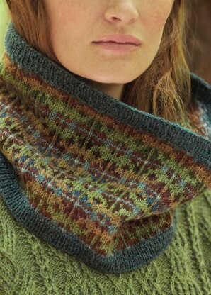 The ROWAN COWL is a beautiful floral inspired cowl from the WILDWOOD collection. This simple patterned design is essentially a single motif repeated throughout on a striping background of colour and therefore is a pefect project for the novice Fairisle knitter.