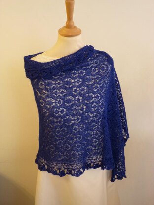 The pattern is only given in charted form and some experience of working a knitted-on edging would be useful. The first stitch of every row of the centre panel is slipped, to give a smooth edge for picking up stitches for the edging. The finished shawl will fit through a wedding ring.