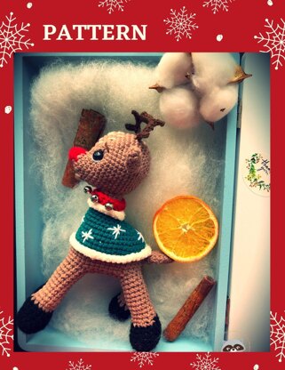 Crochet Amigurumi pattern to a sweet Rudolph the Red-Nosed Reindeer.