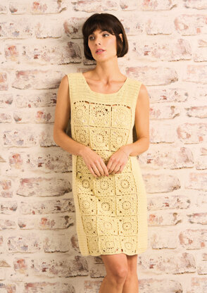 Summer is calling with this sleeveless crochet dress. Pure Cotton Summerlite 4ply is the perfect choice for this playful dress. A panel of traditional granny square motifs adds to the fun, retro feel. Runswick is also available to knit as a cute, cropped top.
