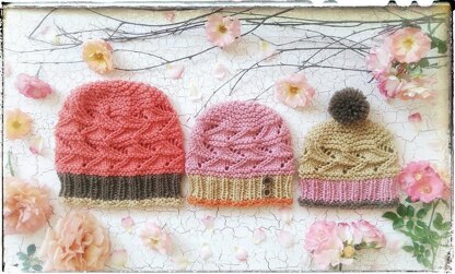 Just 1 skein needed for entire hat (for the main color). since there are 3 colors used, there are small amounts for rib and edge needed = 3 different color skeins. Out of 3 skeins 3 hats could be knitted - by making all colors in different layout. (or you may wish to use just 2 colors by making rib and edge to be the same color).