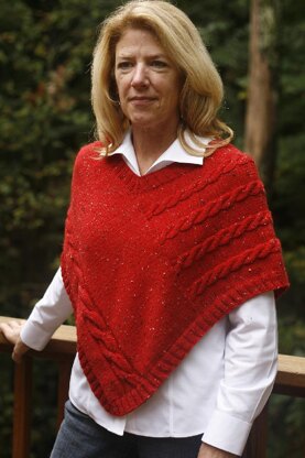 This light weight poncho is the perfect accessory for stylish layering during those colder months. The Rustic Tweed yarn complements this casual, cabled design.