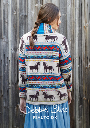 We love this tribute to the American west - those horses are perfect and the colors echo the endless blue skies and the landscape. This is an homage to intarsia, and if you knit it, you know you will love it forever. Knitted in Debbie Bliss Rialto DK, this cardigan is not heavy to wear, making it an all year favorite.