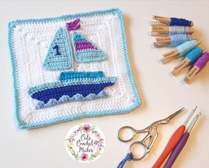 The sailing boat measures approx. 14 x 14cm. Although smaller / larger sizes can be achieved by using different sized hooks.
