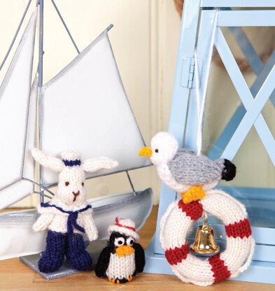 This is the knitting pattern to make a bunny with a sailor outfit and a penguin. The bunny is 9cm (3.5 in), penguin is 4cm (1.6 in) tall. The outfit is sewn to the body.