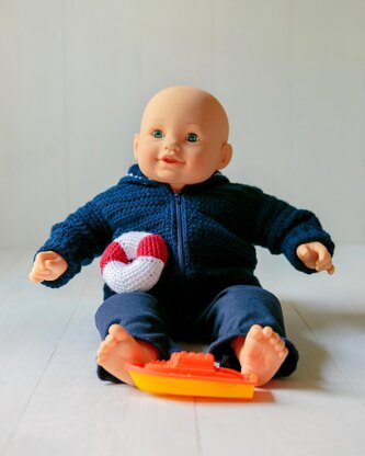 Crochet a nautical crackerjack uniform for your baby sailor. This sweater will make a great shower gift, photography prop or baby's first Halloween costume.