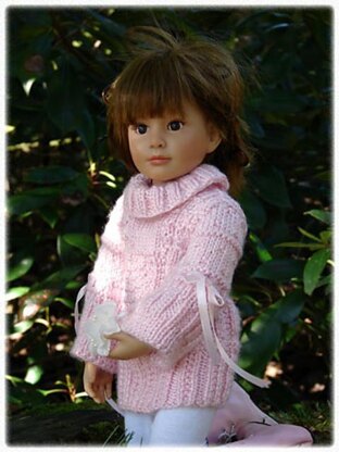 'Sakura'Japanese meaning Cherry Blossom, is a stylish cowl-neck sweater dress especially designed for the 18in Kidz 'n' Cats Dolls like my model, Lena, that features a textured stitch pattern and deep ribbed stitch welt, along with bell-shaped long sleeves with an added eyelet row offering a creative touch with the addition of satin ribbon bows. For easy dressing, complete back-buttoned closure is featured.