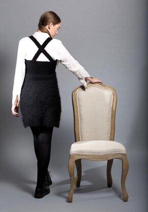A simple pinafore made from two yarns. The skirt section is worked in Garter stitch using Rare Comfort Kid Mohair and the Rib waistband and Garter stitch shoulder straps are worked in a contrast of Classic DK Wool. Suitable for a beginner knitter.