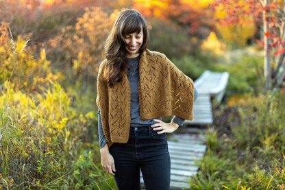 Salt Marsh Wrap is a simple lace wrap with garter stitch border in worsted weight yarn. The lace stitch pattern is written out as well as charted. This wrap can be worn like a shawl or scarf, and can easily be worn closed by using a clasp or pin