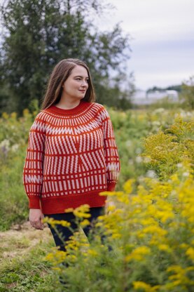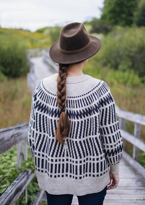Knit in the round, seamlessly, from the top down. Back neck is shaped with short rows. Instructions for colorwork patterns are provided in both charted and written form.