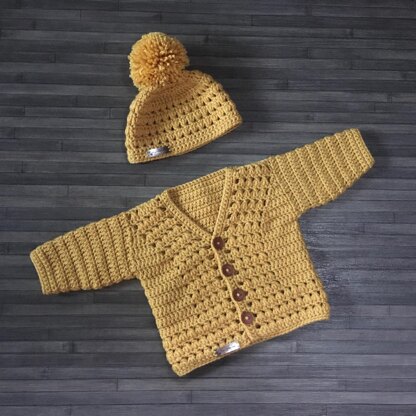 SAM CROCHET SWEATER SET PDF - A textured baby and child cardigan and hat set available in 8 sizes from Newborn to 10 years. Cardigan made seamless from bottom up. Hat in the round top down. Unisex | Gender Neutral - Baby Boy or Baby Girl.