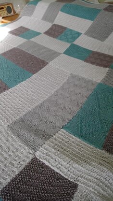 This is either a semi-modular blanket with each blanket being made up of a number of ‘units’ or can be knit 'all in one' Details are given on how to complete both the blue/white/grey modular blanket, and the smaller grey all in one blanket.