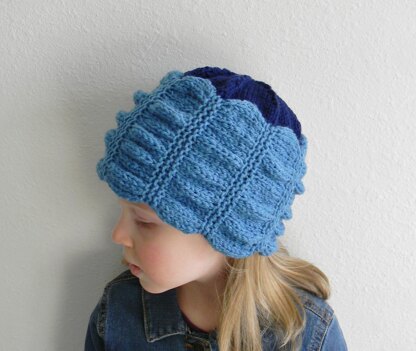 Here is another take on ruffled headband that I designed. Add a topper to a headband and you have a new cute and unusual hat. I used two different colors for the band and the crown for a color-block effect, but by all means feel free to make it in one color. The hat turns out very stretchy, so it fits a wide range of head sizes.