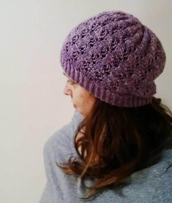 Samarah is a loosely knit, dk weight hat that knits up quickly and beautifully. The lace is easily memorized and simple for beginners, yet satisfying enough for advanced lace knitters. Cozy up your noggin with the luxurious Malabrigo Silky Merino, which provides incredible stitch definition and will help you to create a beautiful new hat.