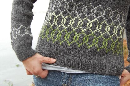 Sambuca is a way to ease into a bit of colorwork. I wanted the fun of fairisle without a tangle of ends or fear of steeking. With that in mind, Sambuca features a motif that combines only 2 colors at a time, and a great deal of basic stockinette. It’s the perfect way to get your feet wet in the world of stranded knitting. With a feminine neckline, a loose fit, and a deep back panel, it’s a flattering sweater that’s just a bit reminiscent of ski slopes without being overly Nordic. The wool/alpaca content of the yarn creates a warm but light fabric with just the right amount of drape for a delicate, slouchy fit. Sample is shown in Valley Yarns Stockbridge, this yarn comes in a ton of gorgeous colors, at a bargain price. Substitute with a yarn of a similar make up. Using yarns with a bargain price makes it easy to justify, right? The three contrast colours need 50-70 yards of yarn.