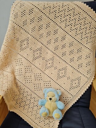 The pattern is very easy for beginners as there are no unusual or difficult stitches to master. The pattern contains written instructions with full stitch counts for every row of each panel of the blanket, as well as a complete chart.