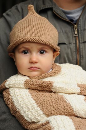 This easy baby blanket was part of the Figheadh Little Charlie Brown Baby Set, #2221. We separated it out from the garment pattern, so now the two can be different projects.