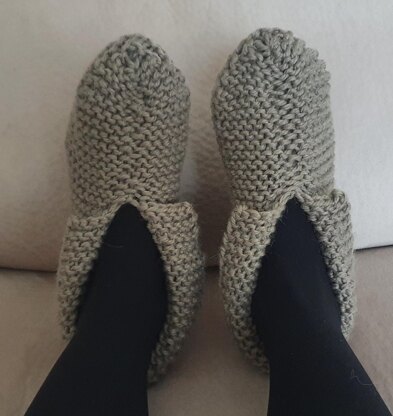 These chunky Slippers with a fold down cuff are knitted in easy garter stitch. Worked in one piece, they knit up quickly and are warm and comfy to wear.