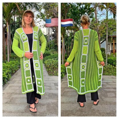 The squares determine the length, the rest of the cardigan is made sideways, so it will fit any size.