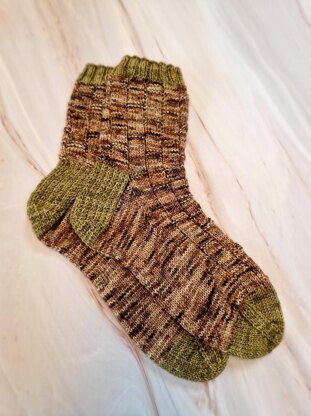 The Sandbox socks are simple cuff down socks with a textured basket weave pattern and a standard heel flap and gusset. There is a contrasting cuff, heel and toe to fit in with the inspiration of the socks. If you’re new to socks then there’s nothing alarming, and if you’re experienced with socks then they will be a perfect relaxing project!
