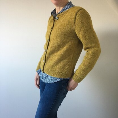 A classic worsted weight cardigan with neat moss stitch borders and elegant tailoring. Perfect to pair with jeans or as a jacket with dresses. A real wardrobe essential.