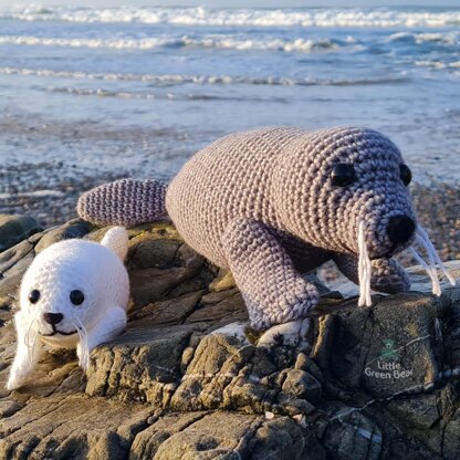 Sandy the seal loves living in the seas around Pembrokeshire with her new pup, teaching pup to fish and how to pinch fish from the local fishermen - if you’re ever on a boat trip in the area keep an eye out, they might pop up to say hello (they’re quite nosey). She is 14 inches long and her pup is 8 inches long (when made with recommended materials).