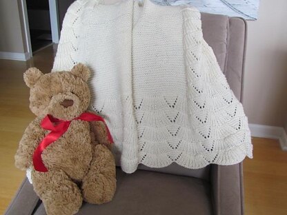 Sanibel Reversible Baby Blanket reminiscent of sea shells on the beach is a timeless heirloom design. Its shell motif border compliments the blanket with a scalloped edge on all four sides. The border is built into the design and knit in 2 halves and grafted in the center.
