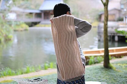 Sansui cowl is a cowl with long cable lines. These lines look like a Japanese Zen garden called “Karesansui (枯山水)”. This pattern is worked flat and you can adjust the length as you like. After finishing knitting, just bind off and sew the edges to complete as a cowl.