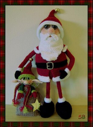Here comes Santa!! Complete with sack and little Elfy helper. This slightly off the wall Santa breaks the traditional mould and is guaranteed to bring smiles to all that see them. Santa stands 14 inches high and his little Elfy friend is 7inches high. They are both knitted flat using 3mm needles apart from the sack which you will need 4mm for. DK or equivalent yarns are used throughout.